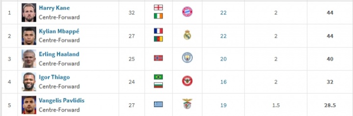 kaiyun-三足鼎立!欧洲金靴:凯恩、姆总同积44分,哈兰德40分第3